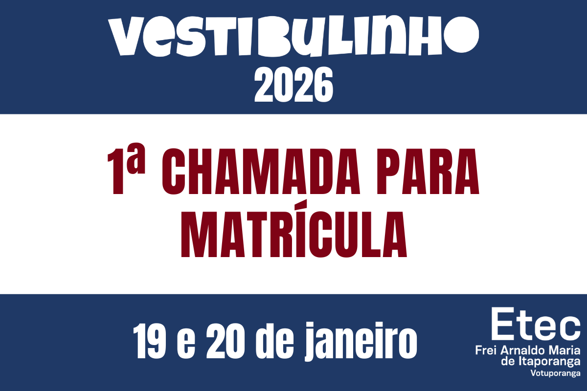 A convocação para esta chamada e realização da matrícula será válida de 19/01 até o dia 20/01/2026 e será enviada através do e-mail cadastrado na Inscrição, bem como disponível para consulta no site ou na secretaria da Etec.